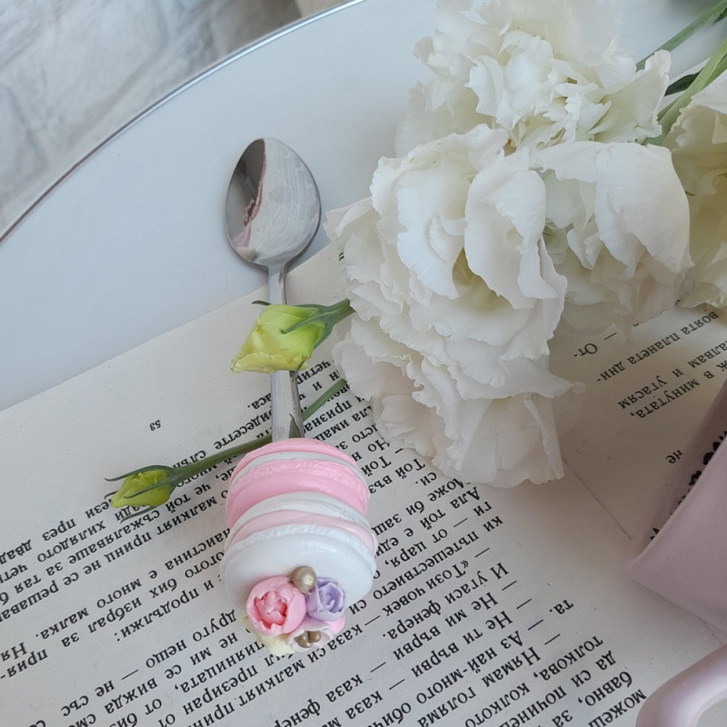 Лъжичка с декорация от полимерна глина - макарони и божури