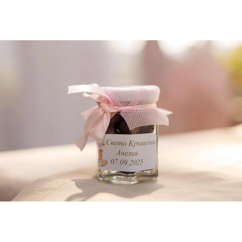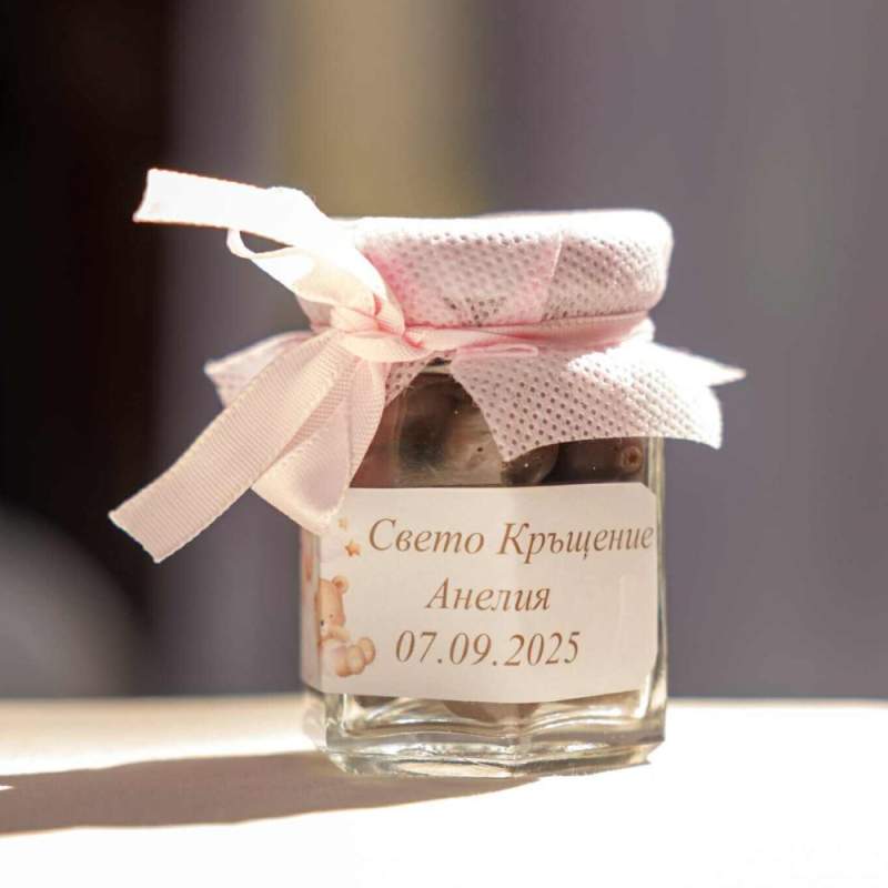 Арка с балони в розово, бежово и бяло Табло с текст, което се отдава под наем само за събитието Декоративни елементи: Помощна маса, мече, голяма панделка, завеса, килим, столче, възглавница *В цената са включени монтаж и демонтаж&..